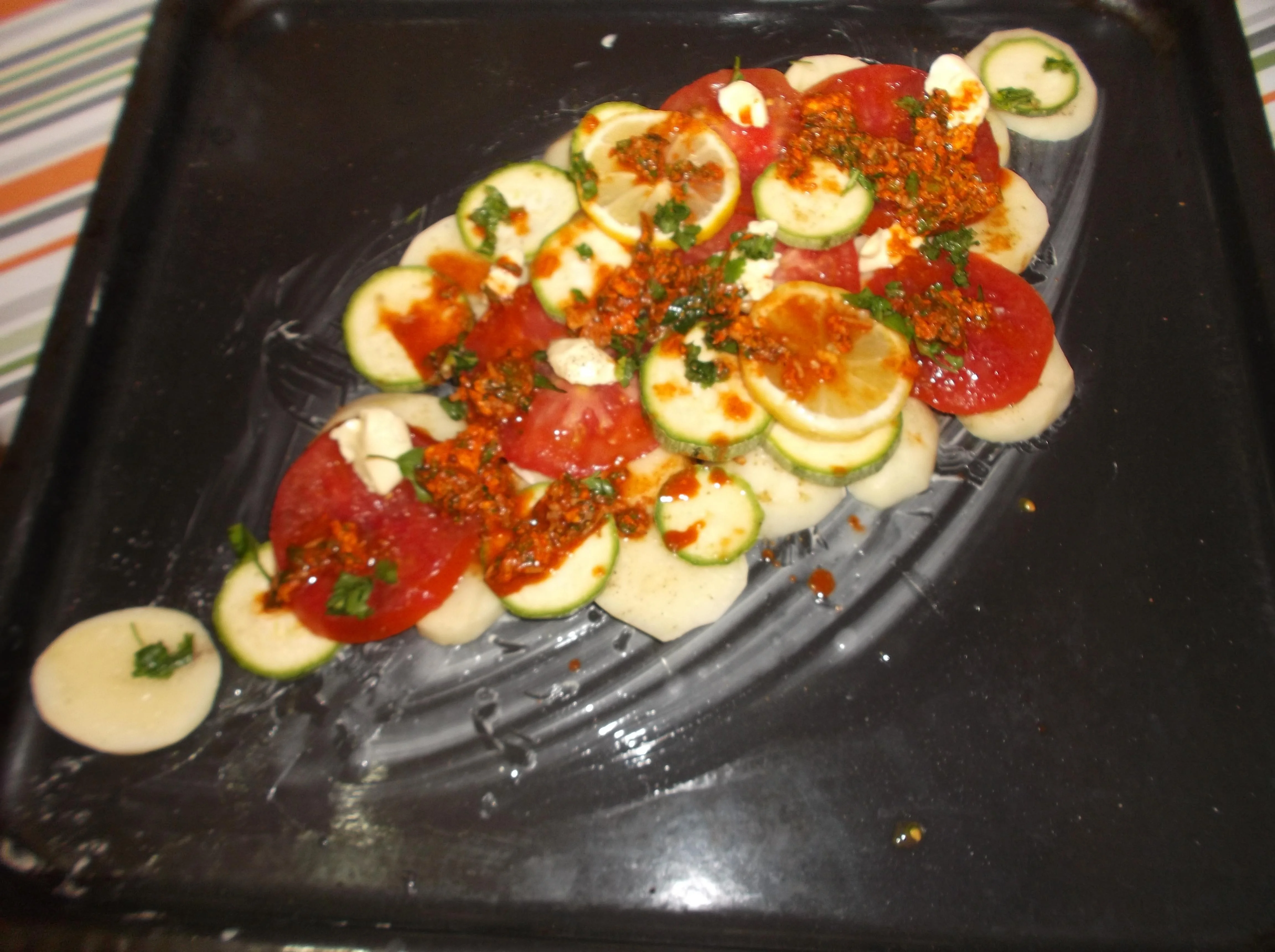 مرحبا اخواتي العزيزات انا عضوة جديدة في المنتدى و هذي اول مشاركة ليا عملت سمكة التونة في الفرن اولا المقادير في الصورة