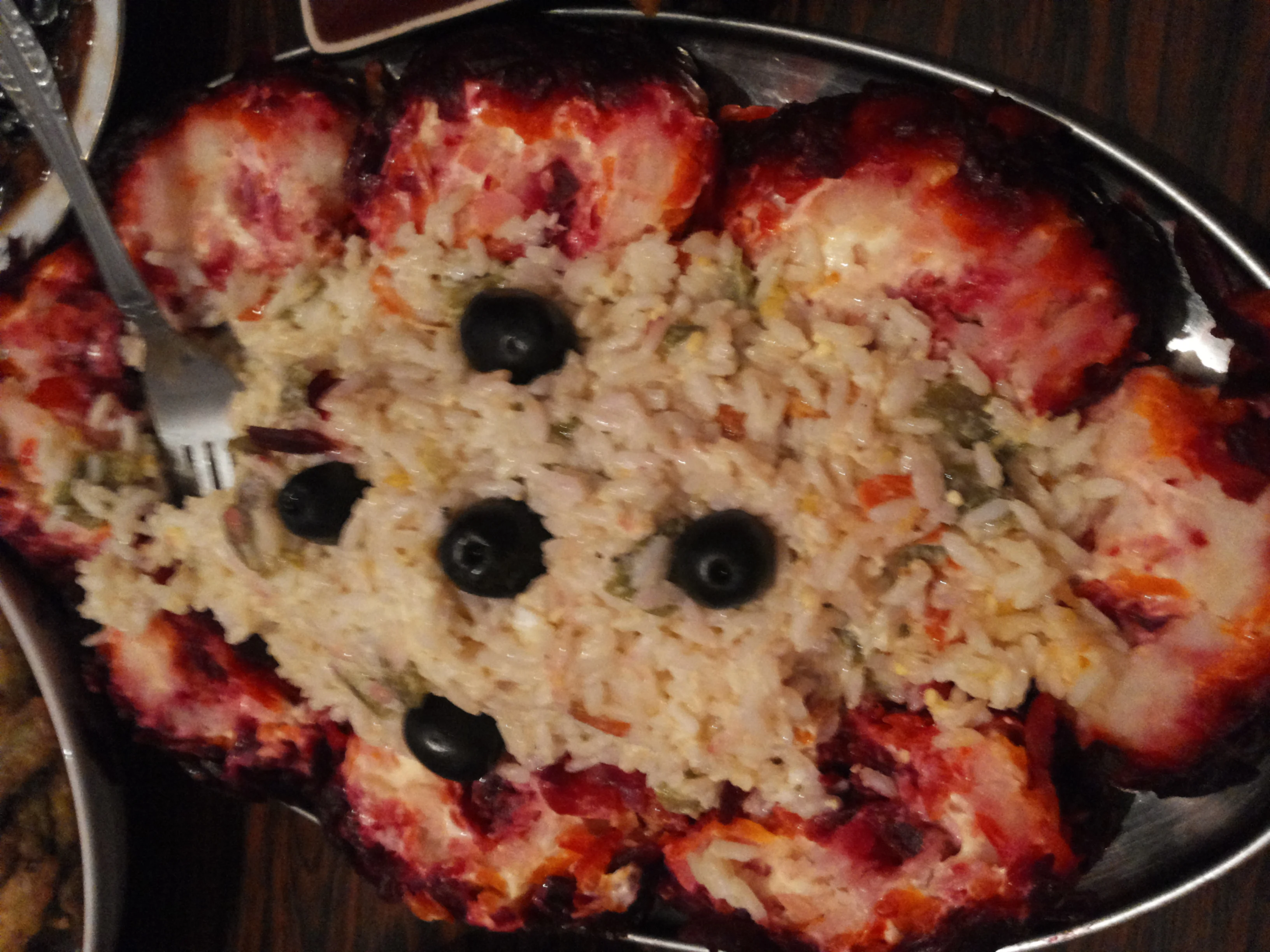 وبالنسبة الي جاتها صعيبة تقدر تحطها في مول وتتبع نفس الخطوات تفرش الورق البلاستيكي في المول و تحط المكونات بالترتيب بدون ما تنسى الملح و المايونيز بين كل طبقةو تخليه يبرد و تقلب الصحن وتزينو الاخت كيما حبيتي و بالصحة و الراحة