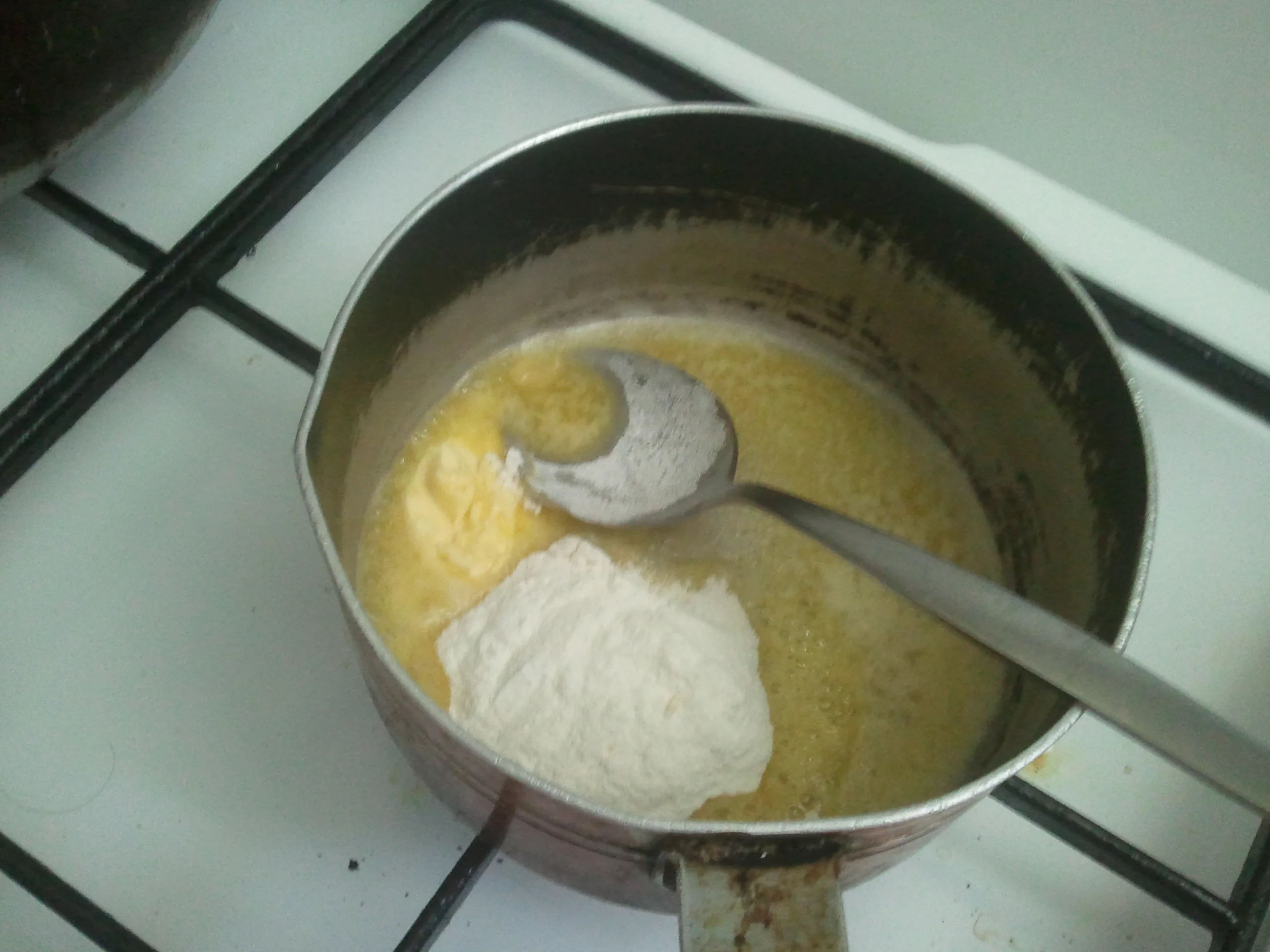البيشاميل ندوب الزبدة و نضيف عليها الفرينة و نحرك مليح حتي تمتزج