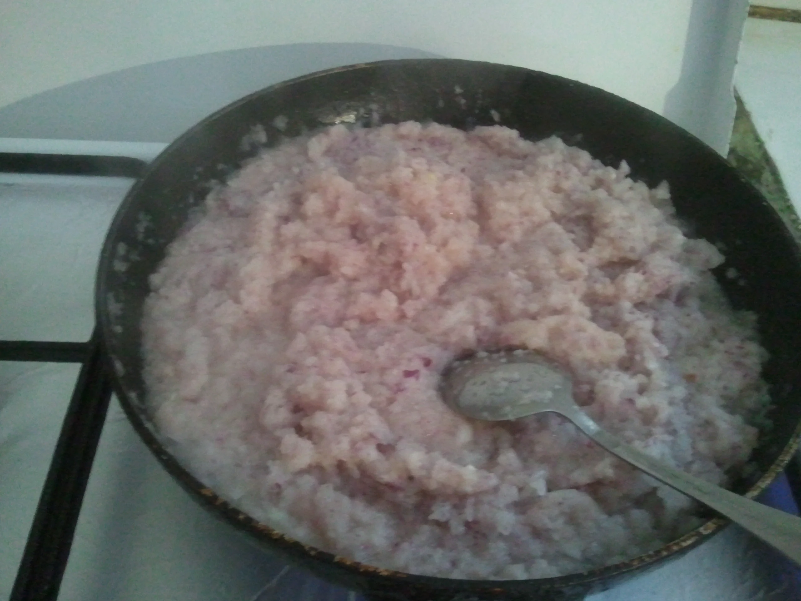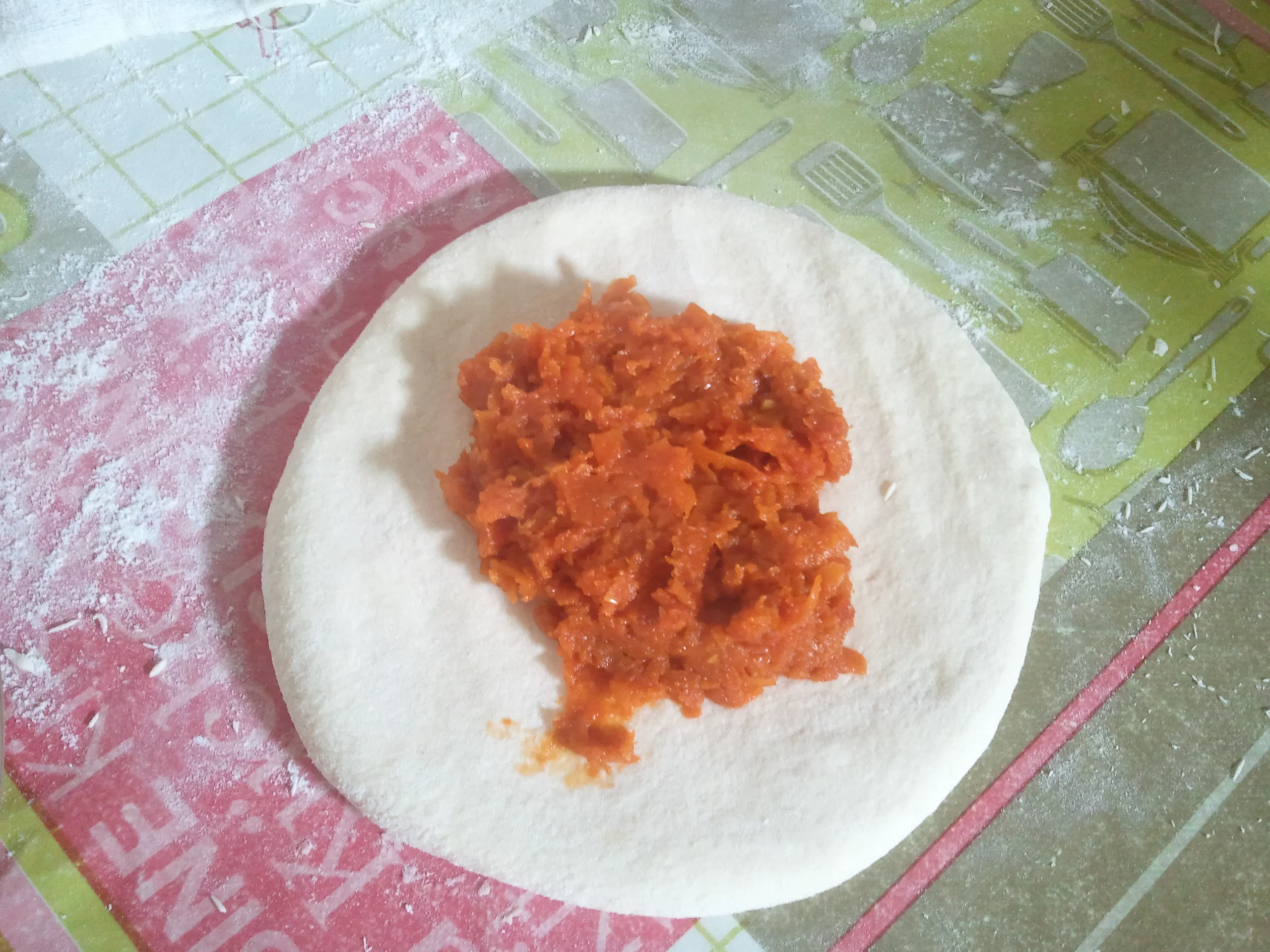 ضيفولها 3حبات جزر مكرفجين +ملح+راس الحانوت +ملعقتان كبار طماطم معلبة+فلفل دريس اختياري+فلفل اسود +ملعقتين صغيرتين سكر و زيت.....في هده المرحلة المفروض نضيفو الشحم ( لان اسمها مشحمة) و لكن انا فضلت عدم اضافته لتفادي المشاكل الصحية..و هدا الشكل النهائي للحشو