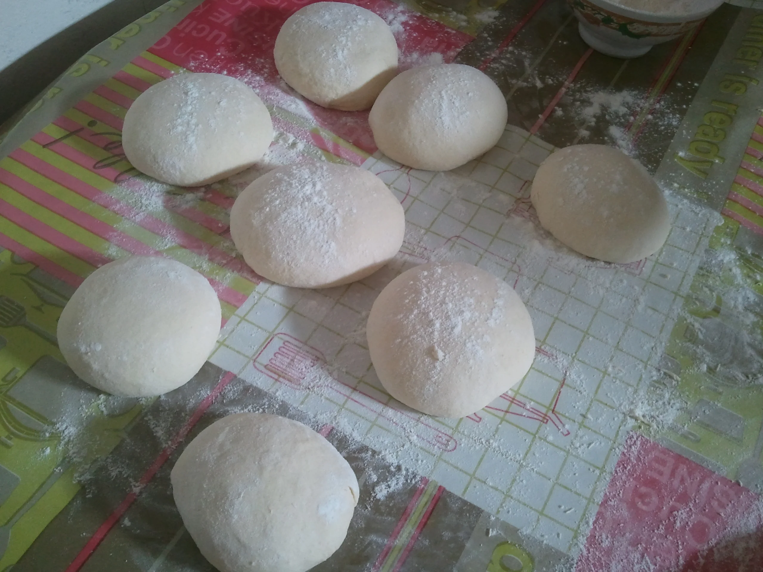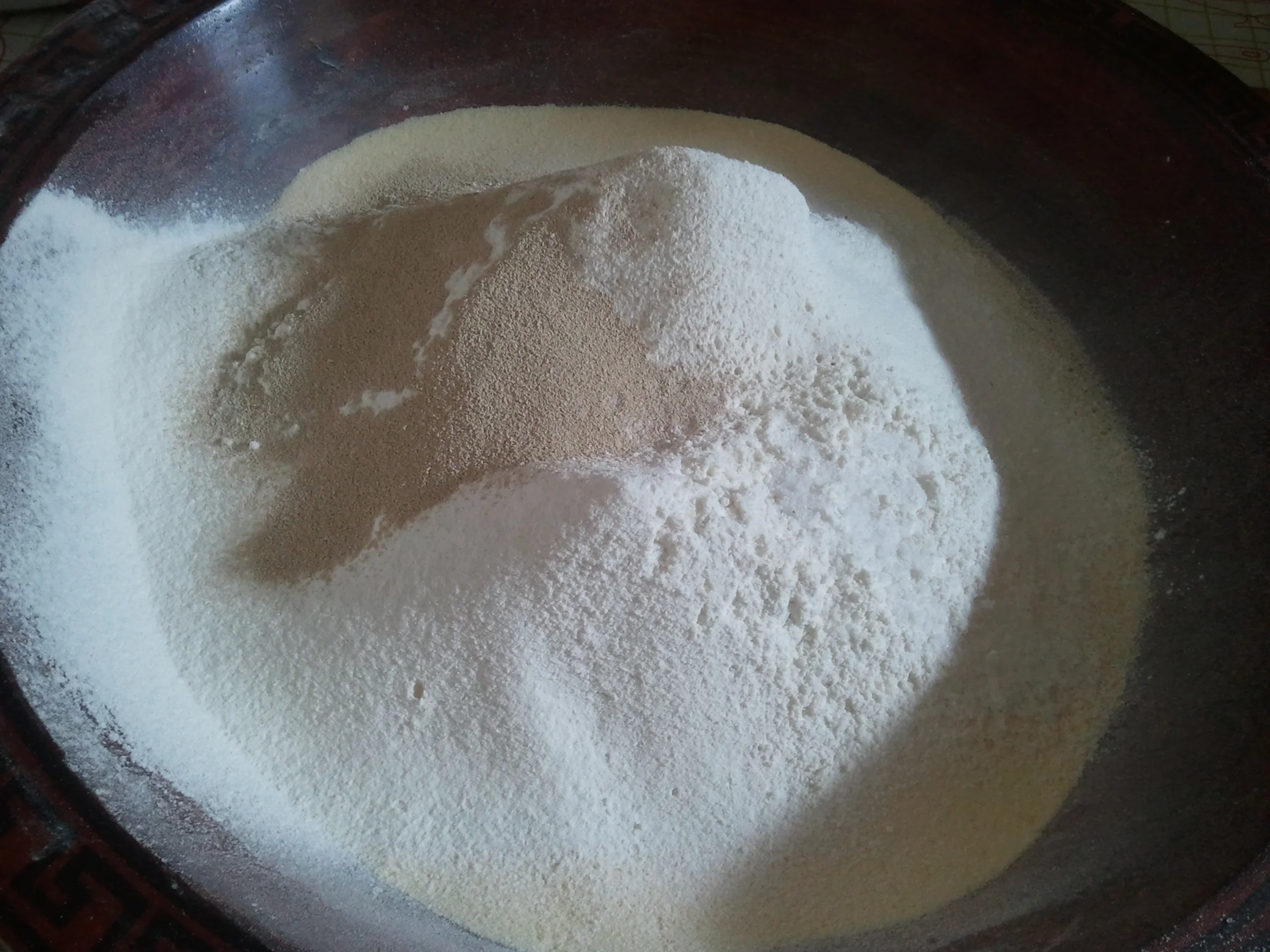كيلتين فرينة+ كيلتين سميد رقيق+ملعقتين كبيرتين خميرة الخبز+ملعقتين صغيرتين سكر +ملح