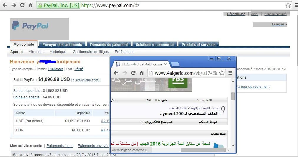 رد: متوفر 500$ بايبال مقابل ccp او يد بيد اخي 135 لدولار ندي عليك المبلغ كامل ماتنساش راح نزيد نتحمل عمولة البايبال وحدي