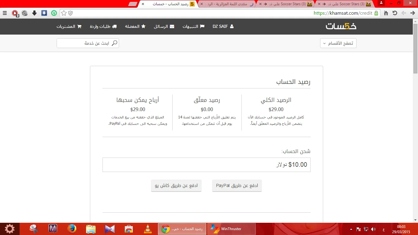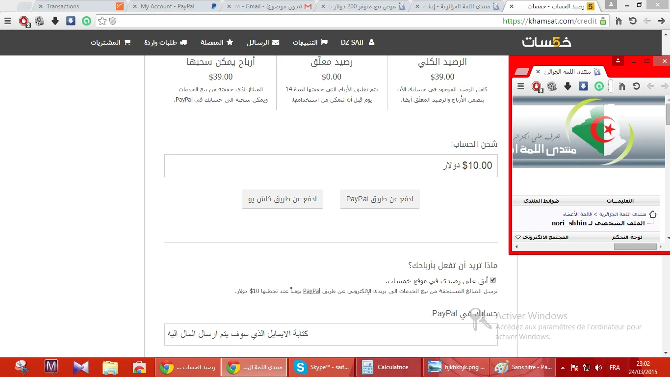 متوفر 39دولار موجودة في حسابي في خمسات ويتم تحويلهم الى حسابك بايبال مباشرة [المال في كارت فيزا]