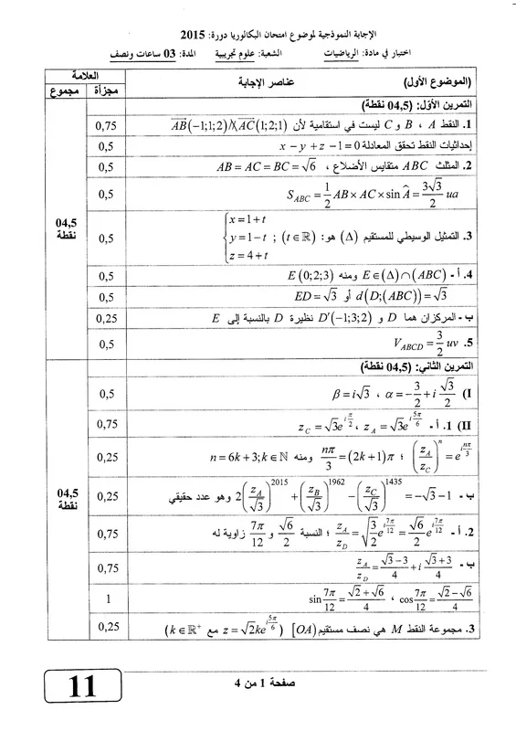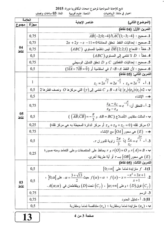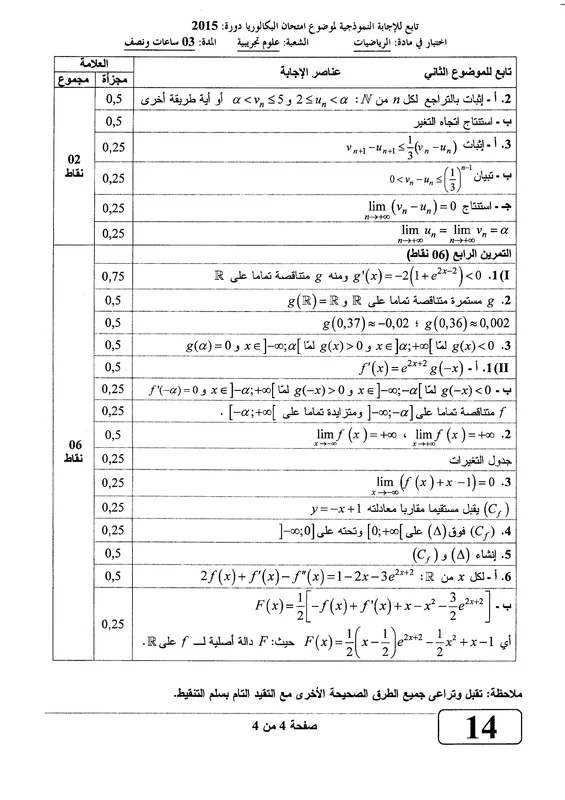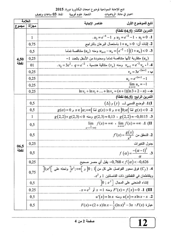 اضع بين ايديكم التصحيح النموذجي لموضوع الرياضيات لباكالوريا 2015 ، شعبة العلوم التجريبية