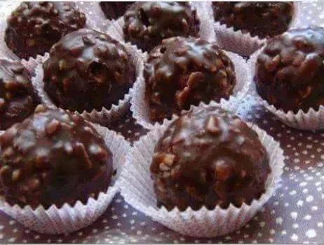 خلطي كل المكونات مليح و ديريهم على شكل كريات . خليهم ينشفو و غطسيهم في شكولا و رمديهم في كاوكاو مرحي بعد ما ينشفو زيدي غطسهم في الشكولا الخطوة الأخيرة اختياري تقدري ديري طبقة واحدا شكولا