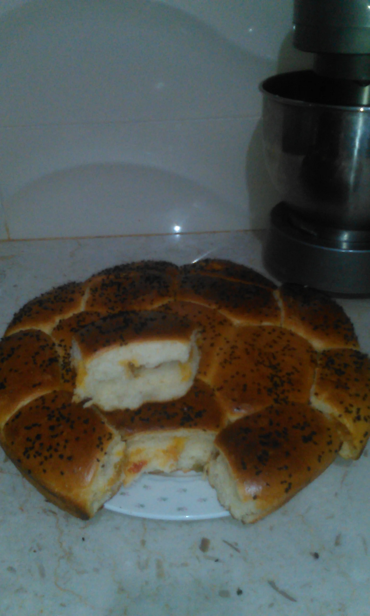 السلام عليكم، إليكم مني اطيب المنى . اليوم حبيت نقدملكم خبز بطريقة ساهلة ومميزة . المقادير: 500غ فرينة + ثلاث ملاعق حليب غبرة + ملعقة كبيرة خميرة الخبز + ربع كاس زبدة طرية + ملح + ملعقة كبيرة سكر + كيس خميرة كيميائية+ حبة بيض .
