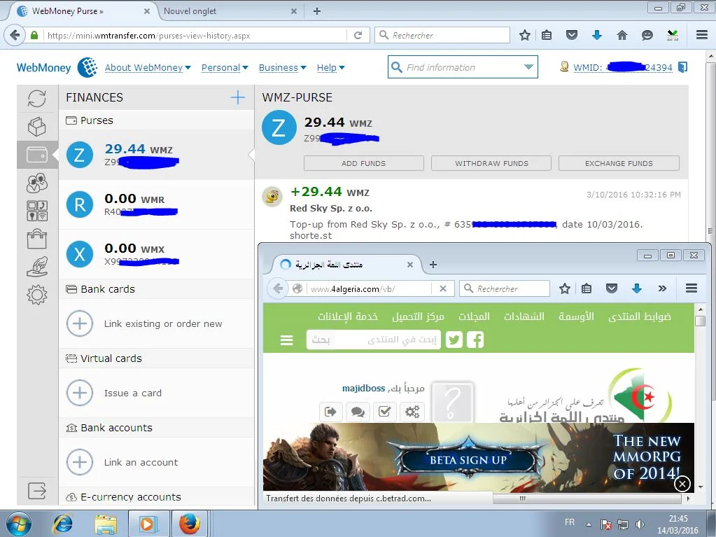 كما ذكرت سابقا في العنوان متوفر مبلغ 29 دولار ويبموني للبيع مقابل ccp المصدر : موقع اختصار الروابط الدفع مباشرة بعد استلام المبلغ. الاثبات في المرفقات .