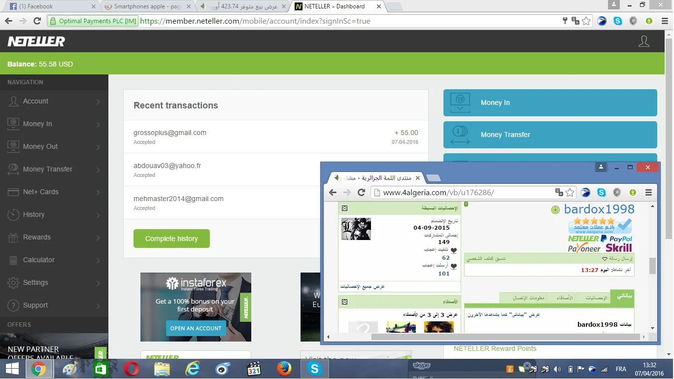 رد: بيع 55 دولار NETELLER مقابل ccp قال @abdelkader: يوم السبت اقوم بالدفع لك مكتب البريد اغلق. إضغط للتوسيع... انشاء الله اخي