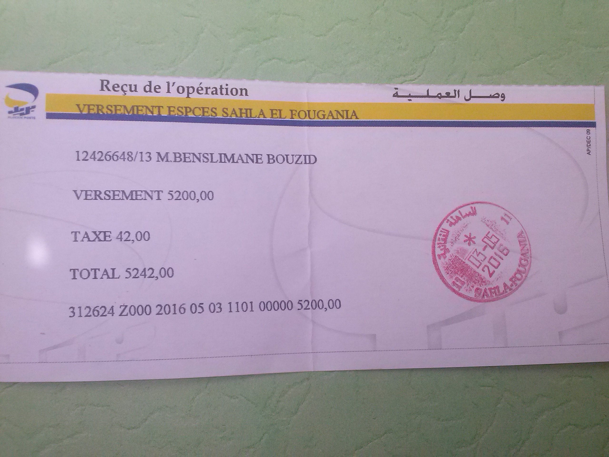 قيمة المبلغ بالدّينار الجزائري: 5.200,00 دج