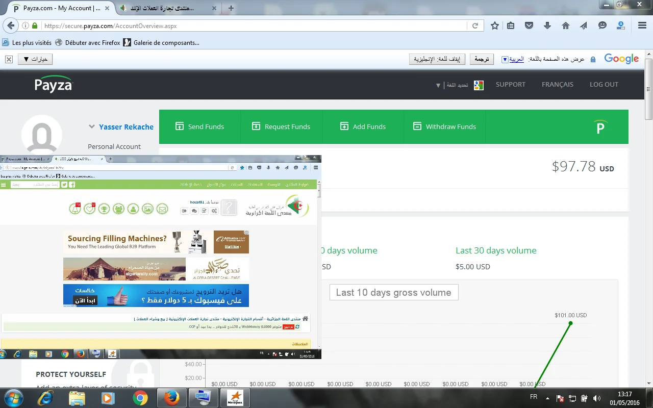 متوفر مبلغ 97,7 دولار بايزا مقابل 172 دج للدولار