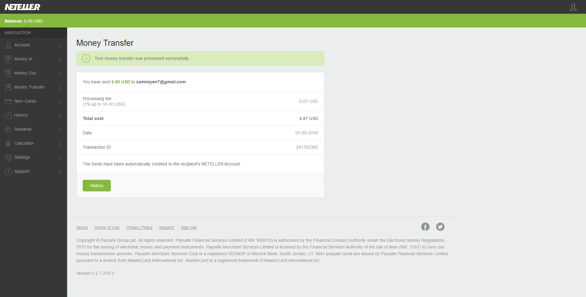 متوفر مبلغ 6.87 دولار neteller