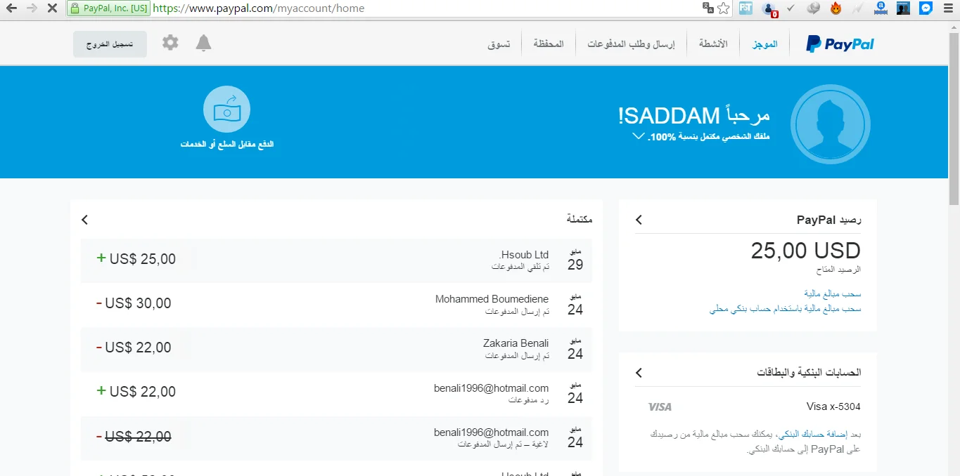 متوفر للبيع 25 دولار على بايبال ، سعر البيع 170 دج للدولار الواحد