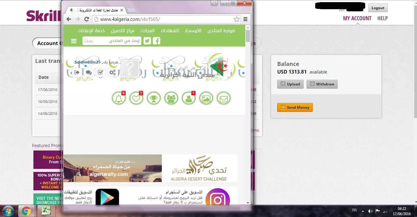 أعرض في موضوعي الجديد هذا مبلغ 1000 دولار أمريكي للبيع على بنك سكريل (Skrill) بسعرٍ مغري للغاية وهو 170 دج للدولار الواحد.