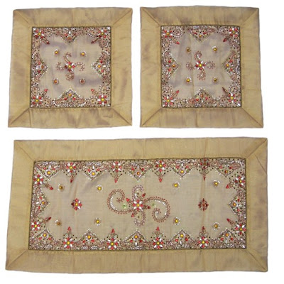 في الهند يقومون بجمع بواقي قماش الساري التي لديهم بحيث تكون مجموعه متنوعه ومتناسقة الالوان ،يمكنك جمع القماش من الاشياء الموجود بالبيت بحيث يمكنك استخدام نوع واحد اكثر من مرة ولكن يكون ذلك بطريقة مختلفة بحيث تغير ملامح القطعه الاساسية،بحيث اذا كان متوفر لديك قماش الاورجانزة السادة او المطرزة ،او مثلا طرحه قديمه سادة او مشجرة ،او عينات من قماش الستائر او التنجيد يمكنك استخدامها .