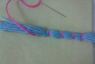 3-سنقوم بعمل شلة الخيوط الكثيفة التى سيتم تركيبها على القطع المجمعة والتي يتراوح عدد الخيوط لتكوين هذه الشلة من 20 خيط الى 26 لتكون كثافتها مناسبة هذا بالنسبة للصوف.