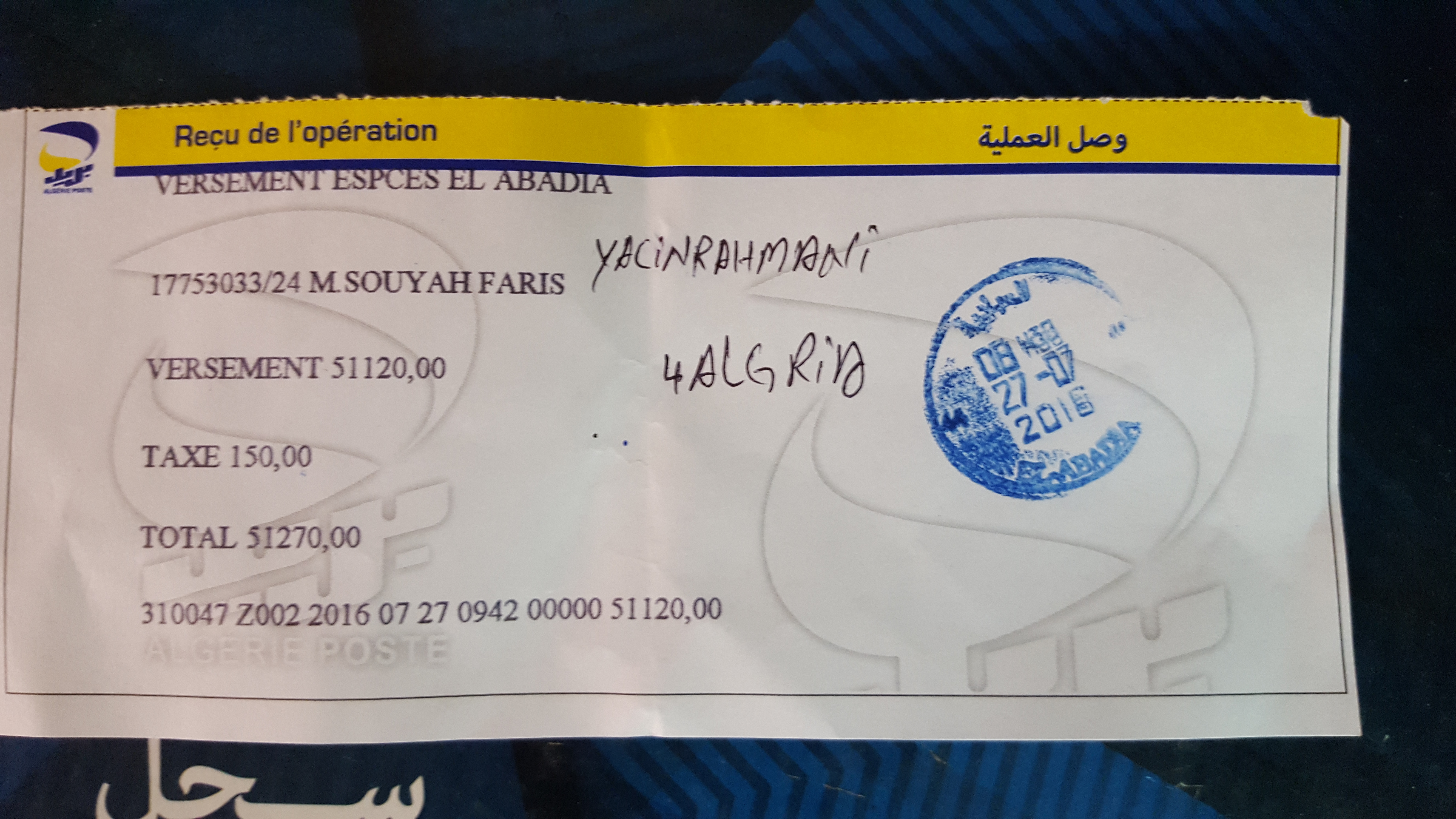 تم وصول المعلوماتتم حجز لك 284 تصلك صافية بمبلغ 51120 دج العمولة عليا اخي الفاضل والمعلومات مع الاشراف