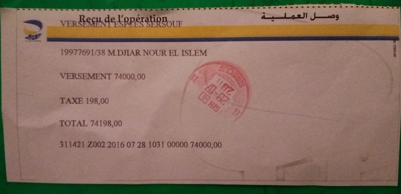 أخي اسلام تم دفع 9250دج بنجاح في انتظار تأكيد استلامها عبر البريد.