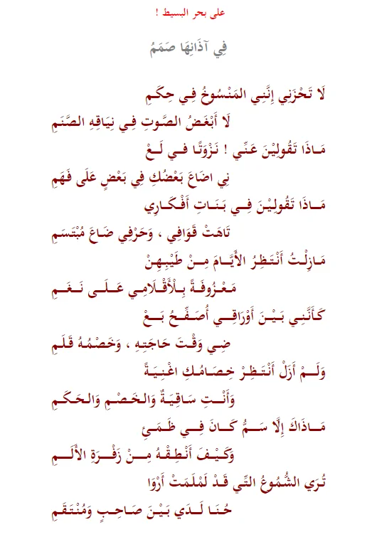 فَنفختُ الرُّوحَ مِن مَزمَارهم وَغدوتُ للظَلامِ موطِنا