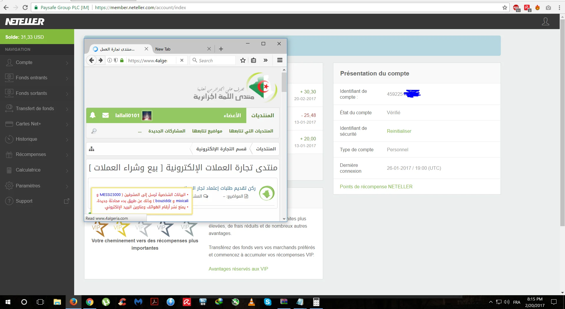 تم البيع بيع 31 دولار neteller مقابل 175دج فقط