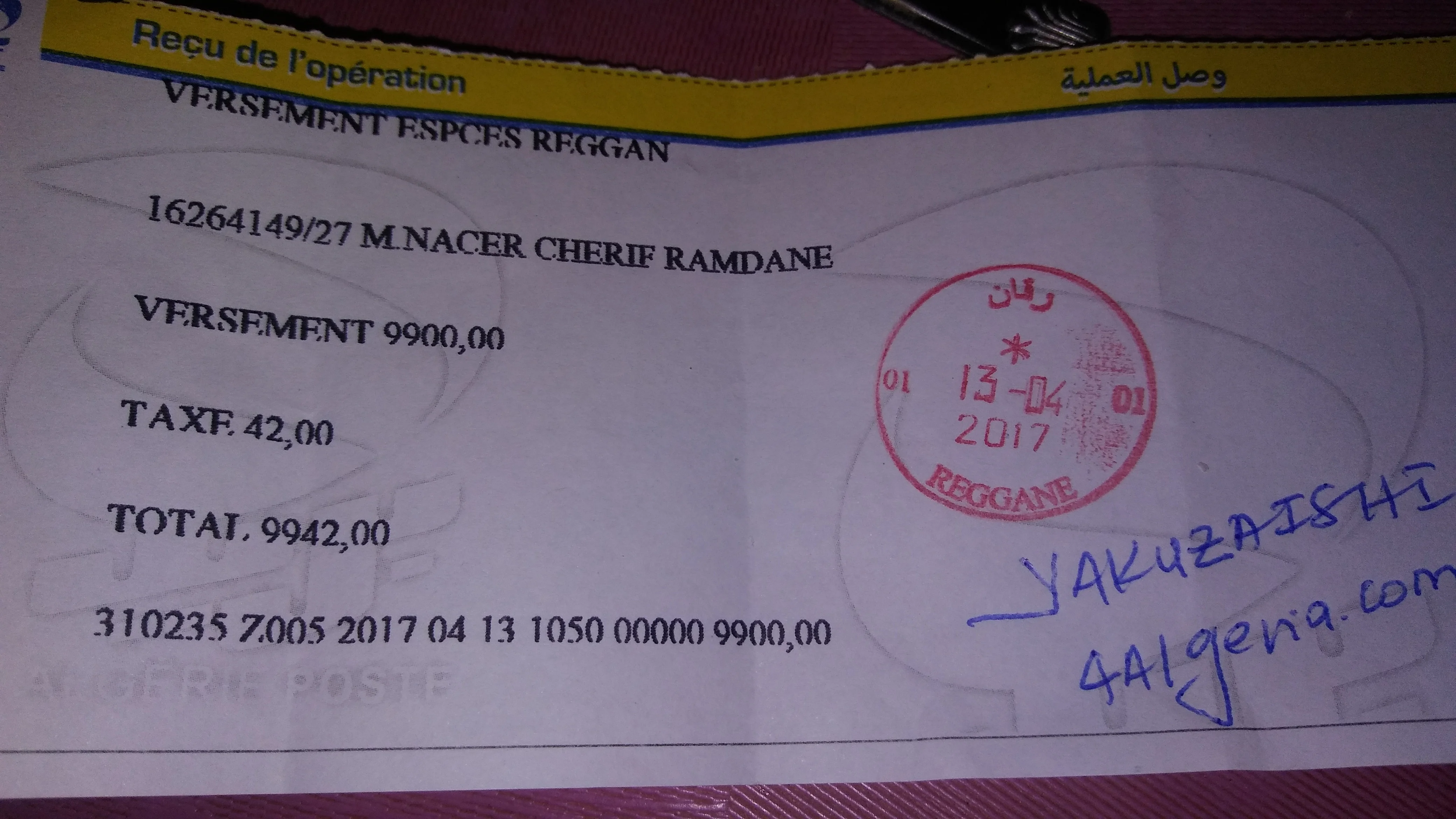 يباع المبلغ دفعة واحدة مقابل 9900 دج