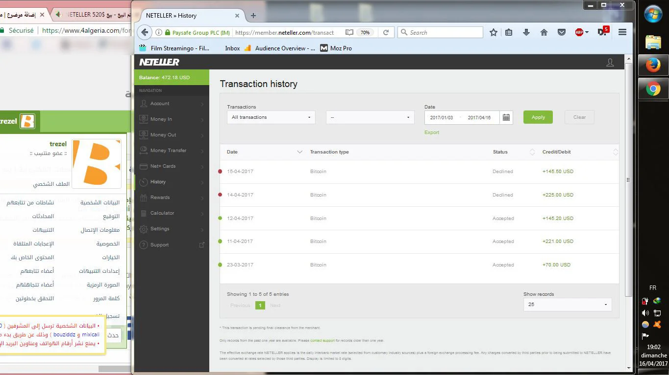 تم البيع بيع $450 NETELLER بسعر 185 دج - CCP