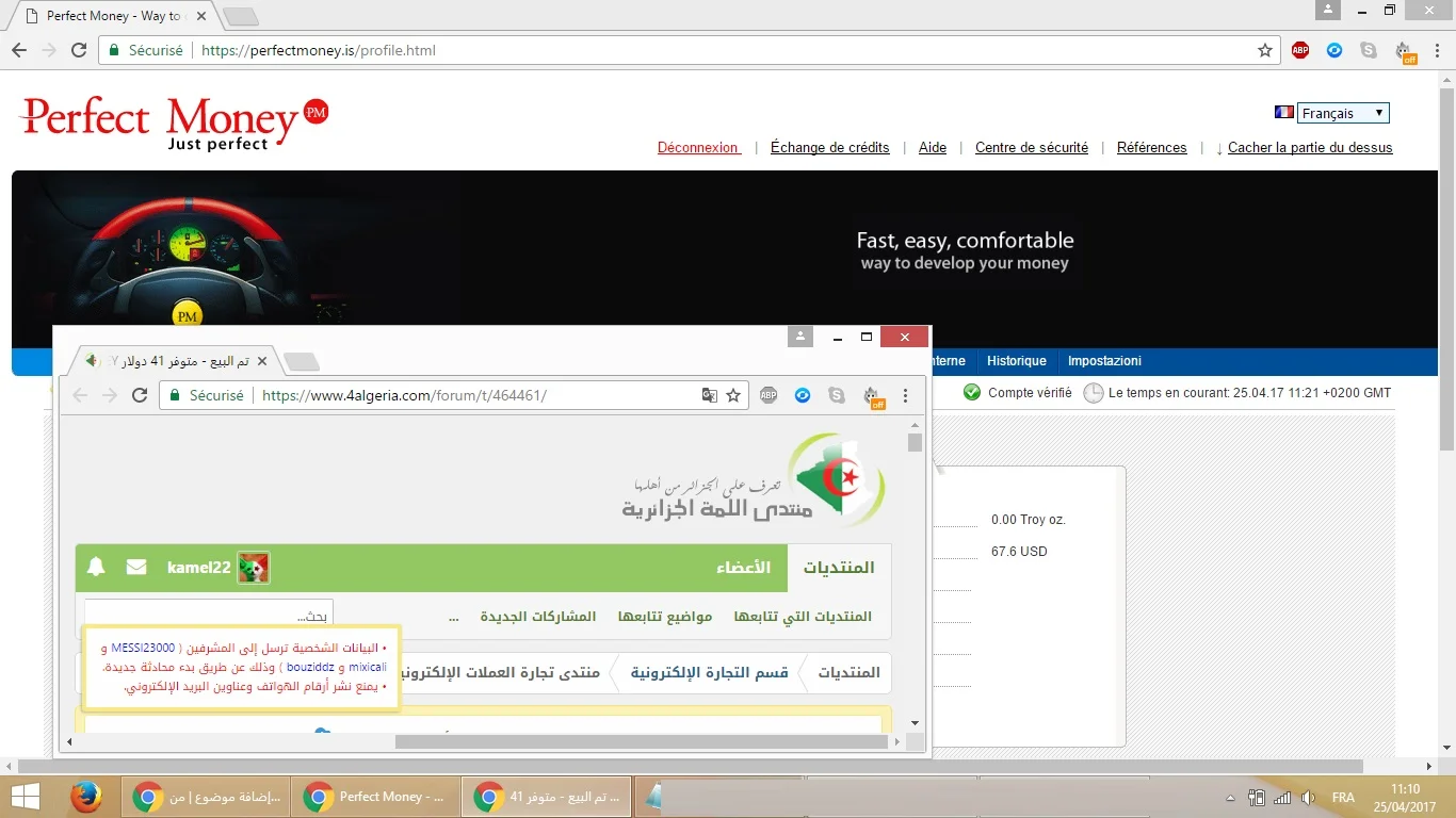 تم البيع متوفر 59 دولار PERFECT MONEY مقابل CCP