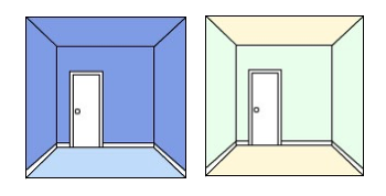 أما استخدام خطوط عرضية بحجم كبير يضفي اتساعاً للأماكن والغرف الصغيره ويفضل أن تكون الخطوط بلون متقارب من درجة اللون الأساسي للجدار.. وإن كانت الخطوط العرضيه ضعيفة سوف تعطي للغرفه اتساعا كبيراً.. للتوضيح على ذالك: