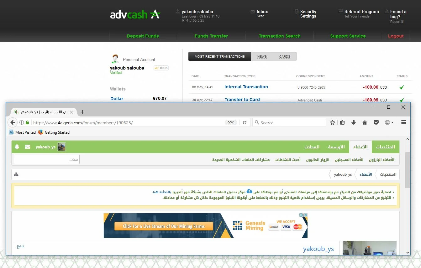 تم البيع بيع مبلغ (50) دولار (ADVCASH) مقابل (9800) دج