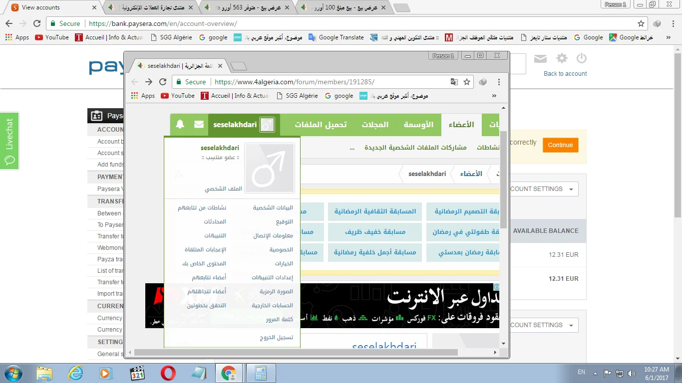 عرض مُلغى متوفر للبيع مبلغ 12.30 اورو paysera مقابل ccp