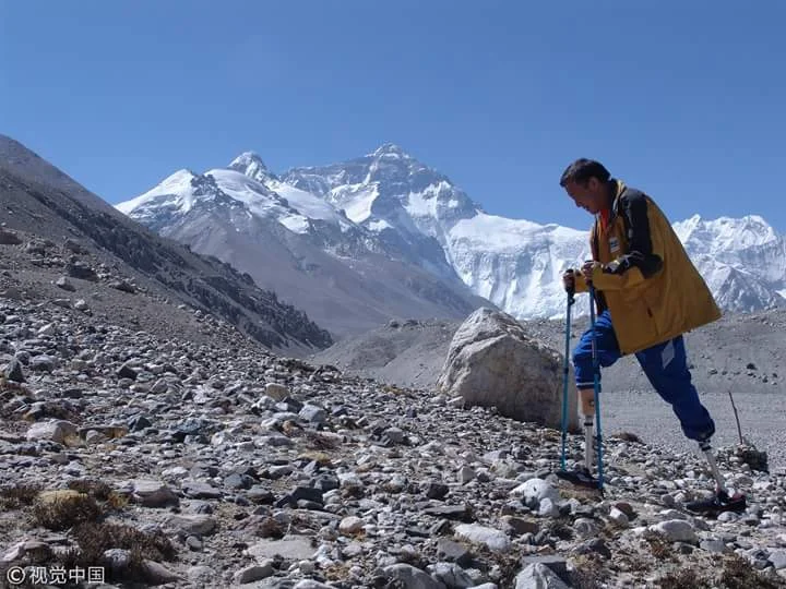 وعلى مدى السنوات الأربعين الماضية، أطلق أربعة تحديات للوصول إلى قمة 8848 مترا، لكن لم ينجح حتى الآن. فقد ساقيه في السن الـ24 سنة.