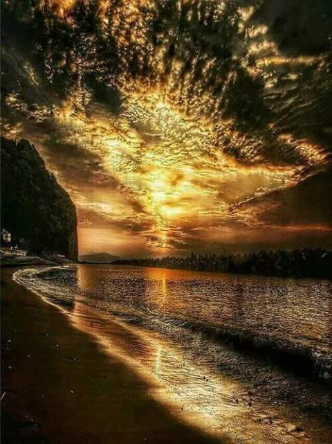 واكثر ما شد انتباهي جمال ذلك الشاطئ وتشكيلة الغيوم المتناثرة على الغروب.
