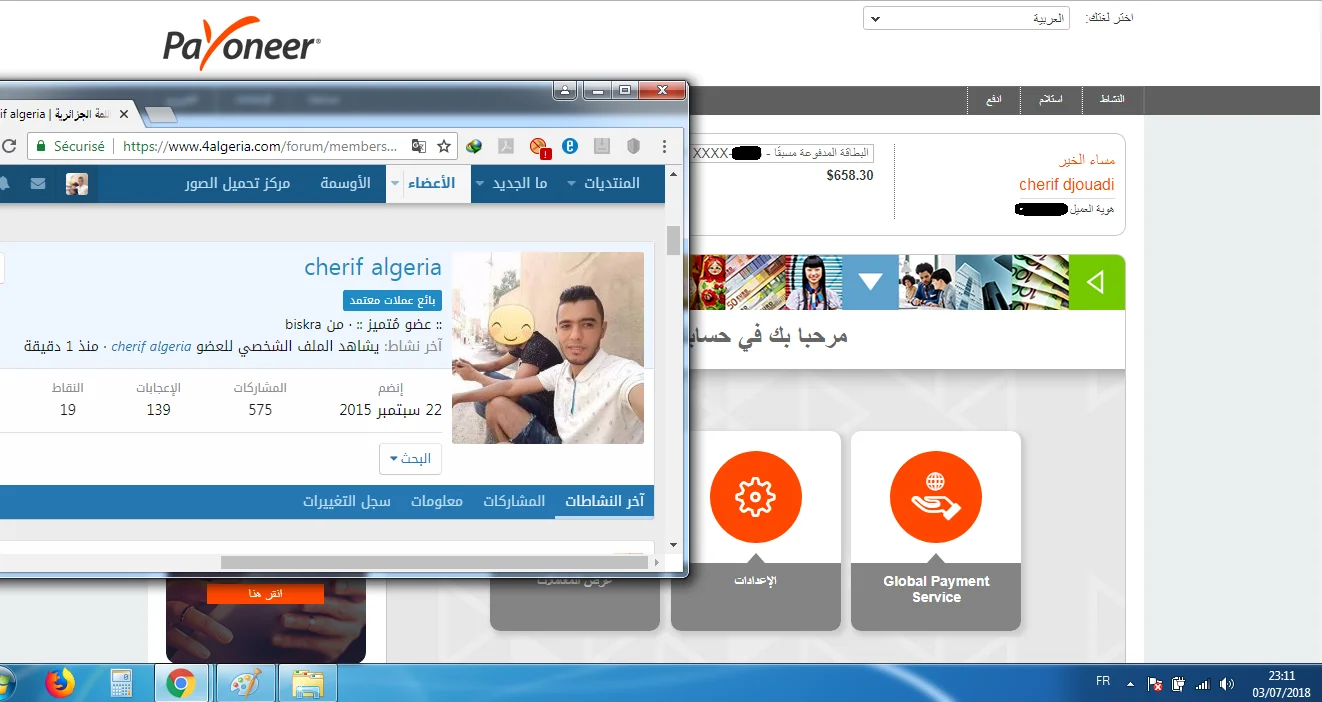 متوفر مبلغ 640 دولار على بايونير للبيع مقابل 115200 دج
