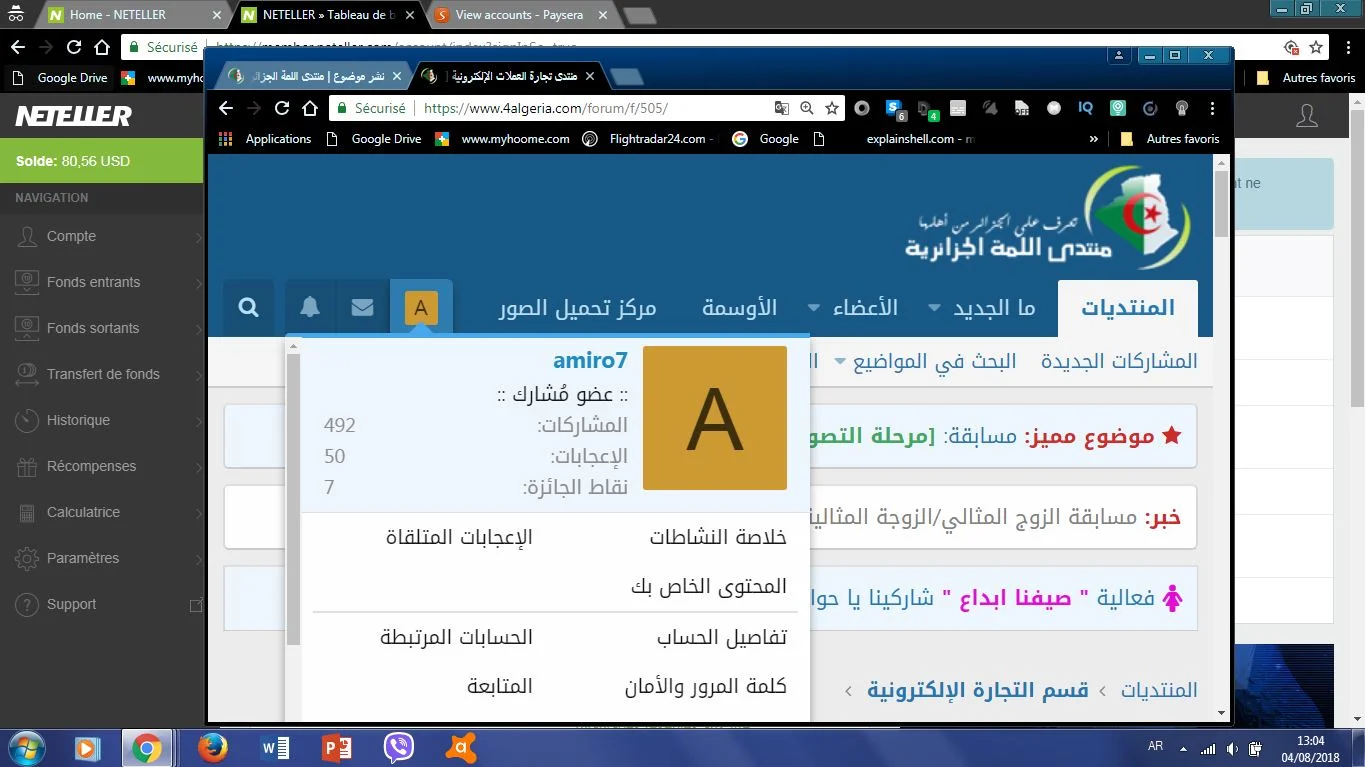 السلام عليكم...متوفر80 دولار نتلر مقابلCCP ...الاولوية لمن ياخذ كامل المبلغ...