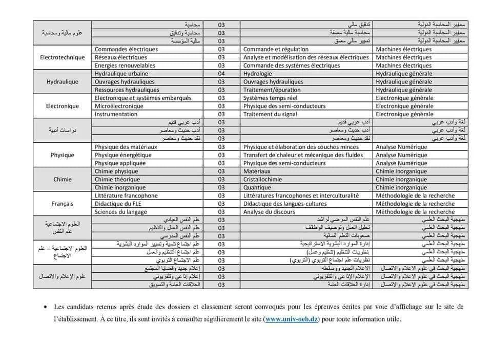 مشاريع مسابقة الدكتوراه في جامعة العربي بن مهيدي أم البواقي :
