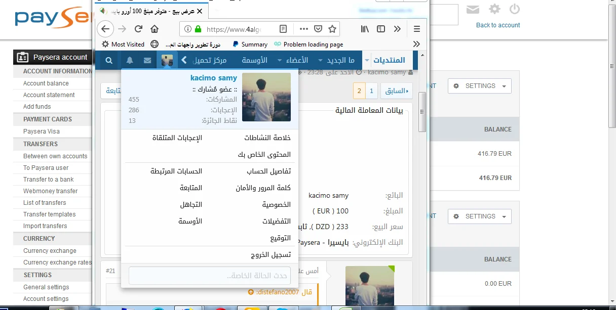 اسم عضوية البائع والشاري + اسم المنتدى + المبلغ