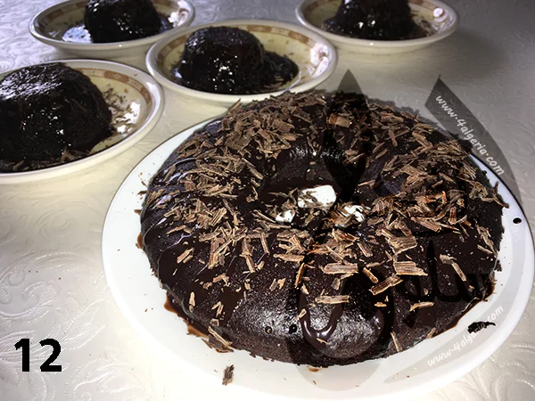 وهنا قمت بتزيين قطع الكيك قبل التقديم بصوص الشوكولا
