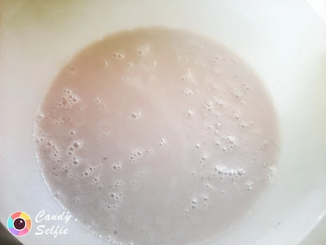 2حبة بيض مع قرصة الملح نضربهم مليح حتى يطلع المزيج ويتغر لونو للابيض