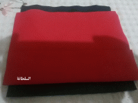 اضع المنديل الاسود من الاسفل واضع فوق الابيض واحاول تسويته بطريقة الطي على اثنين