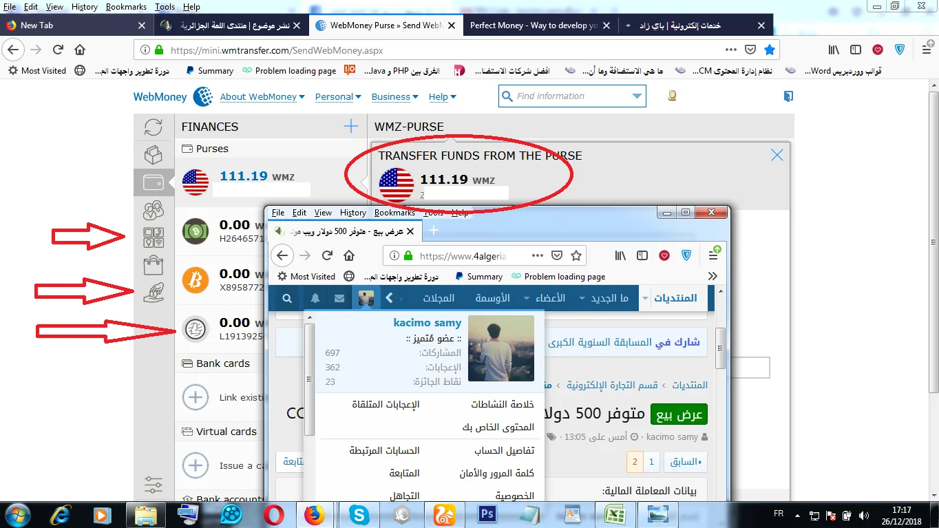 ( شاهد المحفظات البيتكوين في حسابي في الصورة )