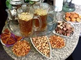 دون ان ننسي مختلف انواع الحلويات والشاى والاهم هو شتى انواع المكسرات التى من ضرورى احضارها