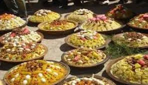يتم تحضير طبق كبير يحتوى على 7اصناف من الحلويات وما اكثر