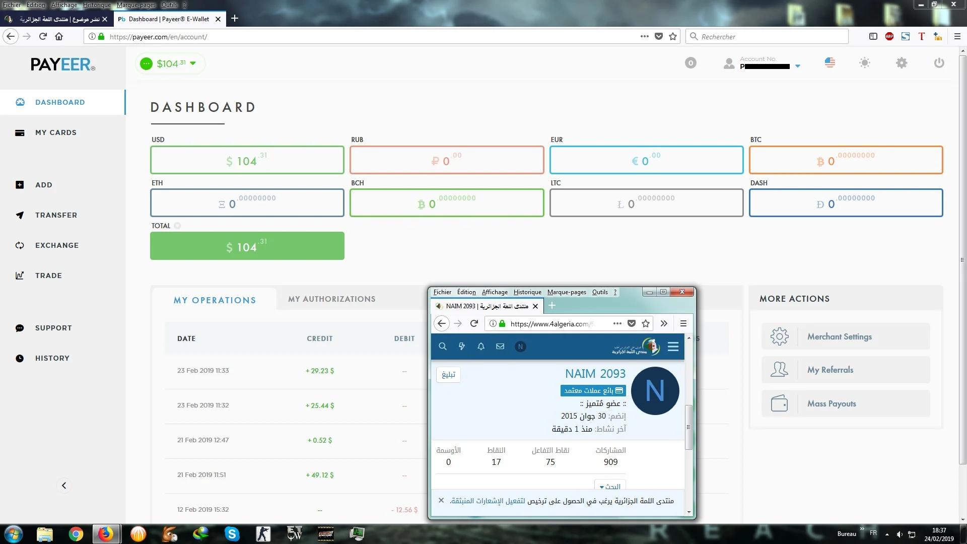 متوفر 104$ PAYEER مقابل 195دج للدولار