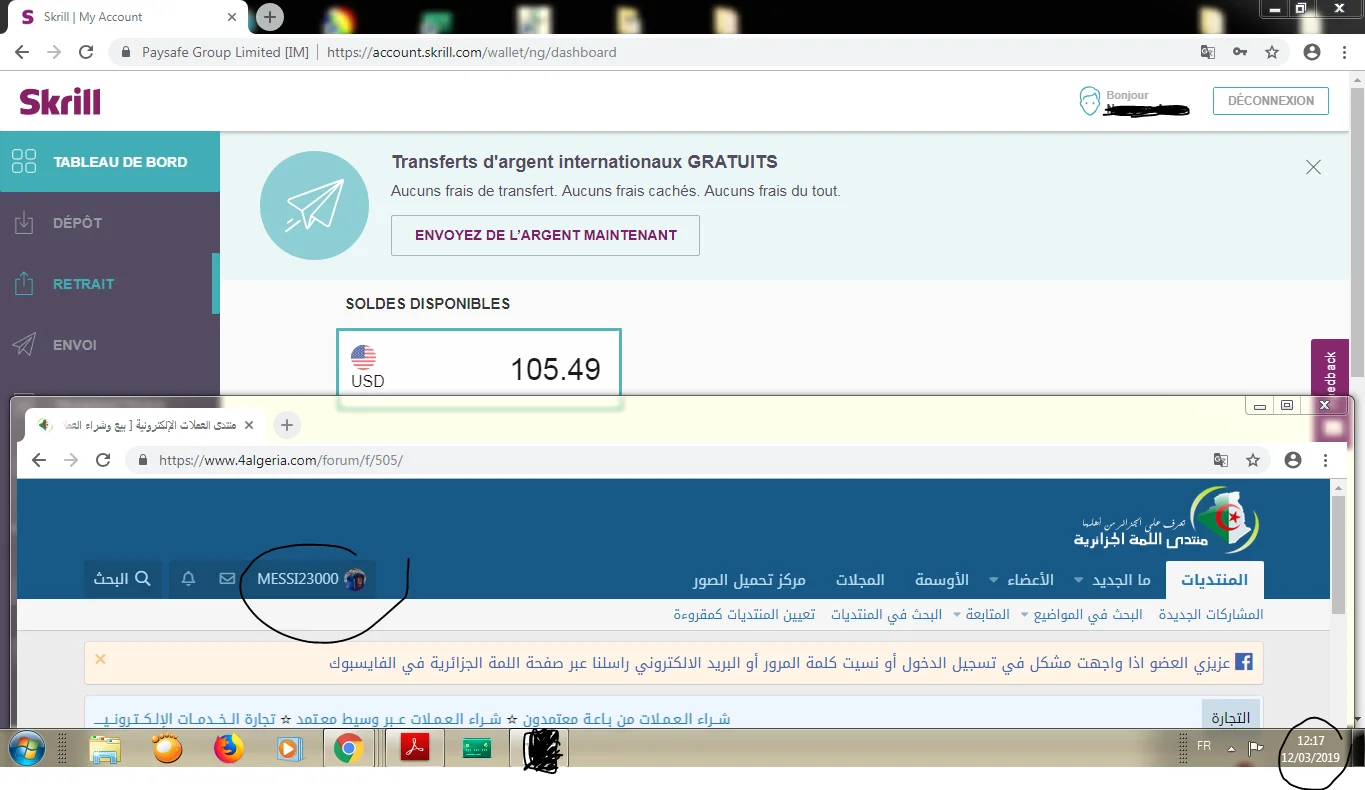 بيع مبلغ 429.63$ skrill $105.49 + webmoney مقابل baridimob/CCP