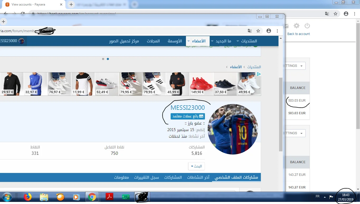 متوفر عندي 500 اورو paysera للبيع مقابل التحويل في CCP فقط