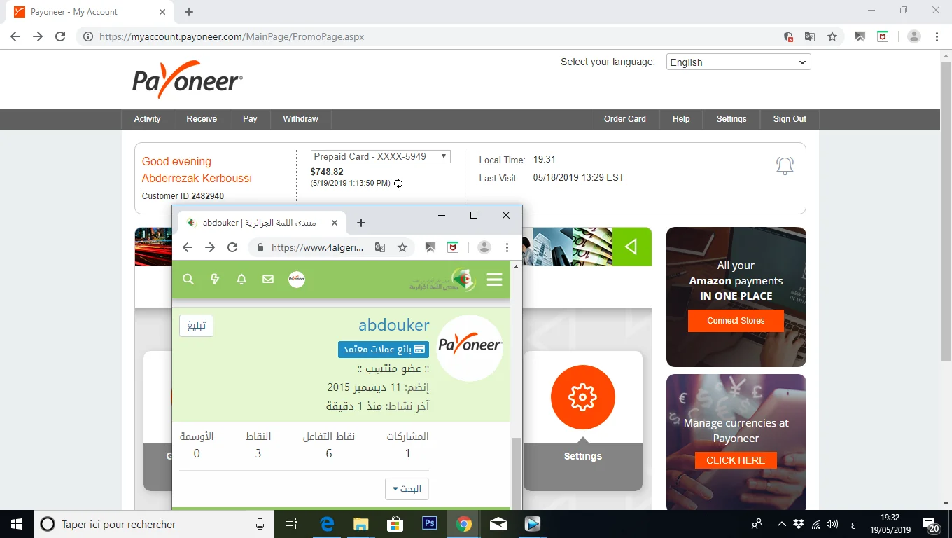 تم البيع متوفر 500 دولار payoneer مقابل CCP