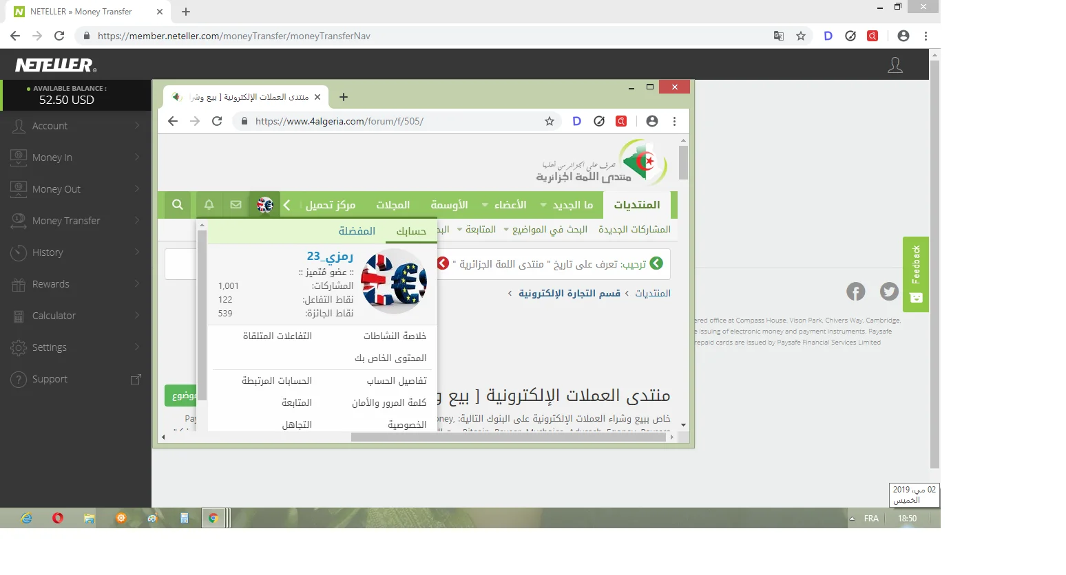 متوفر مبلغ 50 دولار neteller مقابل Baridi Mob / CCP