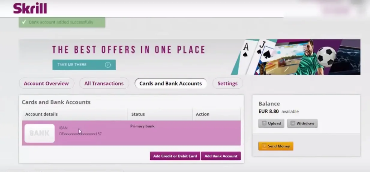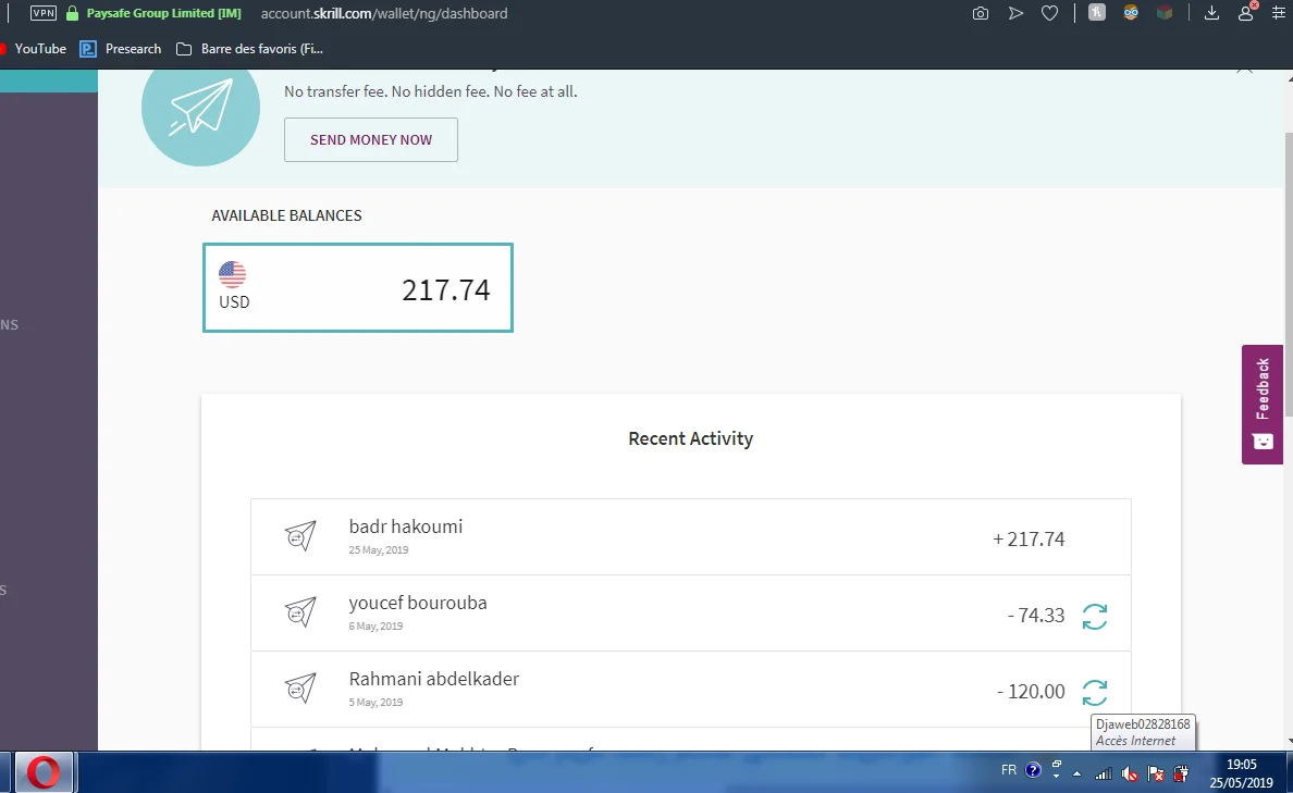 يمكن ارسالها أخي لكن العمولة 6 دولار يصلك مبلغ 211 دولار و يستغرق من يومين الى 5 ايام ليدخل في حسابكالسلام عليكم اخي اذا كان حسابك محقق بالوثائق هل يمكنك تحويلها بواسطة خاصية التحويل البنكي (_bank account