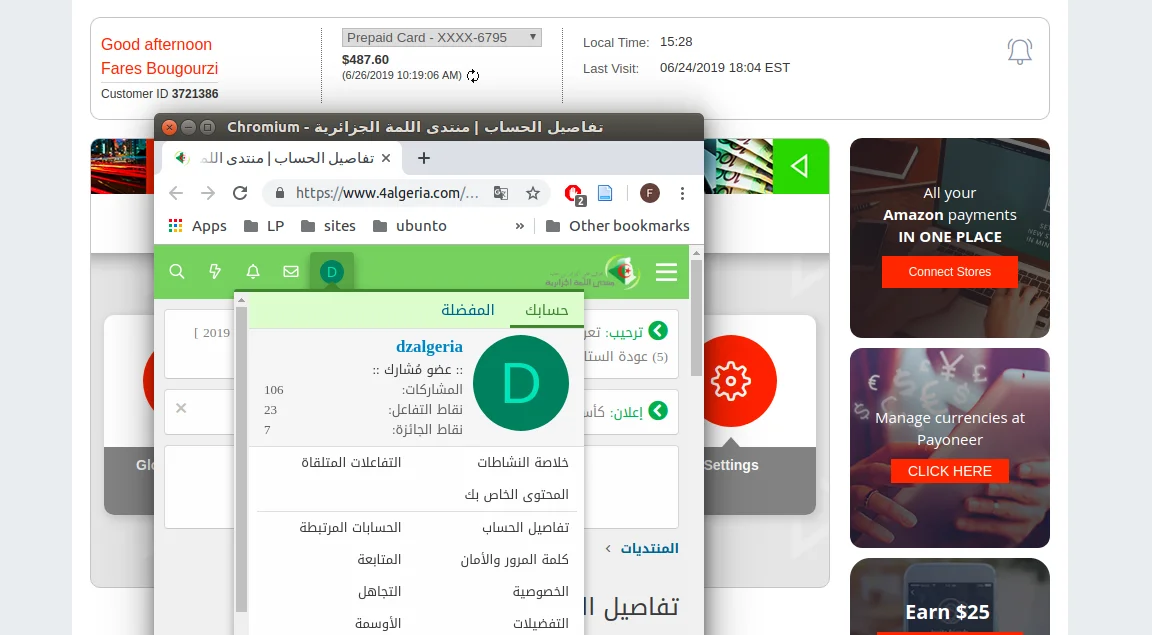 متوفر 400$ PAYONEER مقابل 195دج للدولار