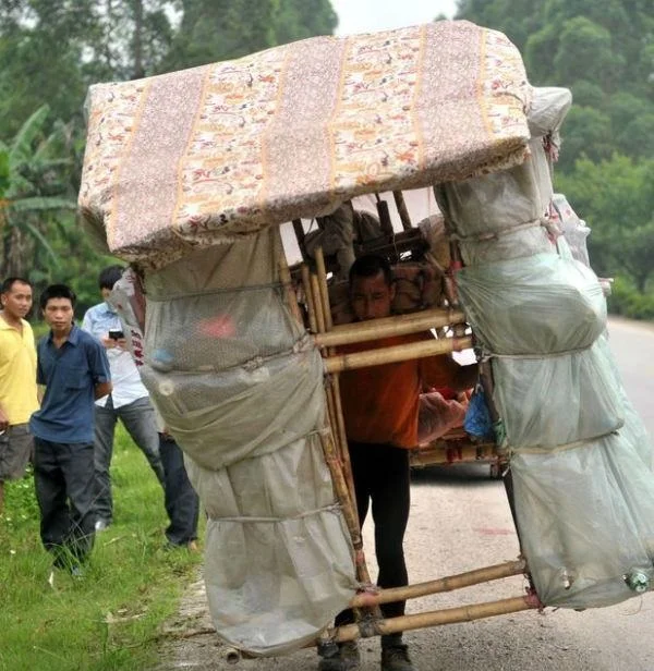 -قرر شاب صيني أن يصنع لنفسه بيتاً محمولاً بعد أن فقد وظيفته ولم يعد