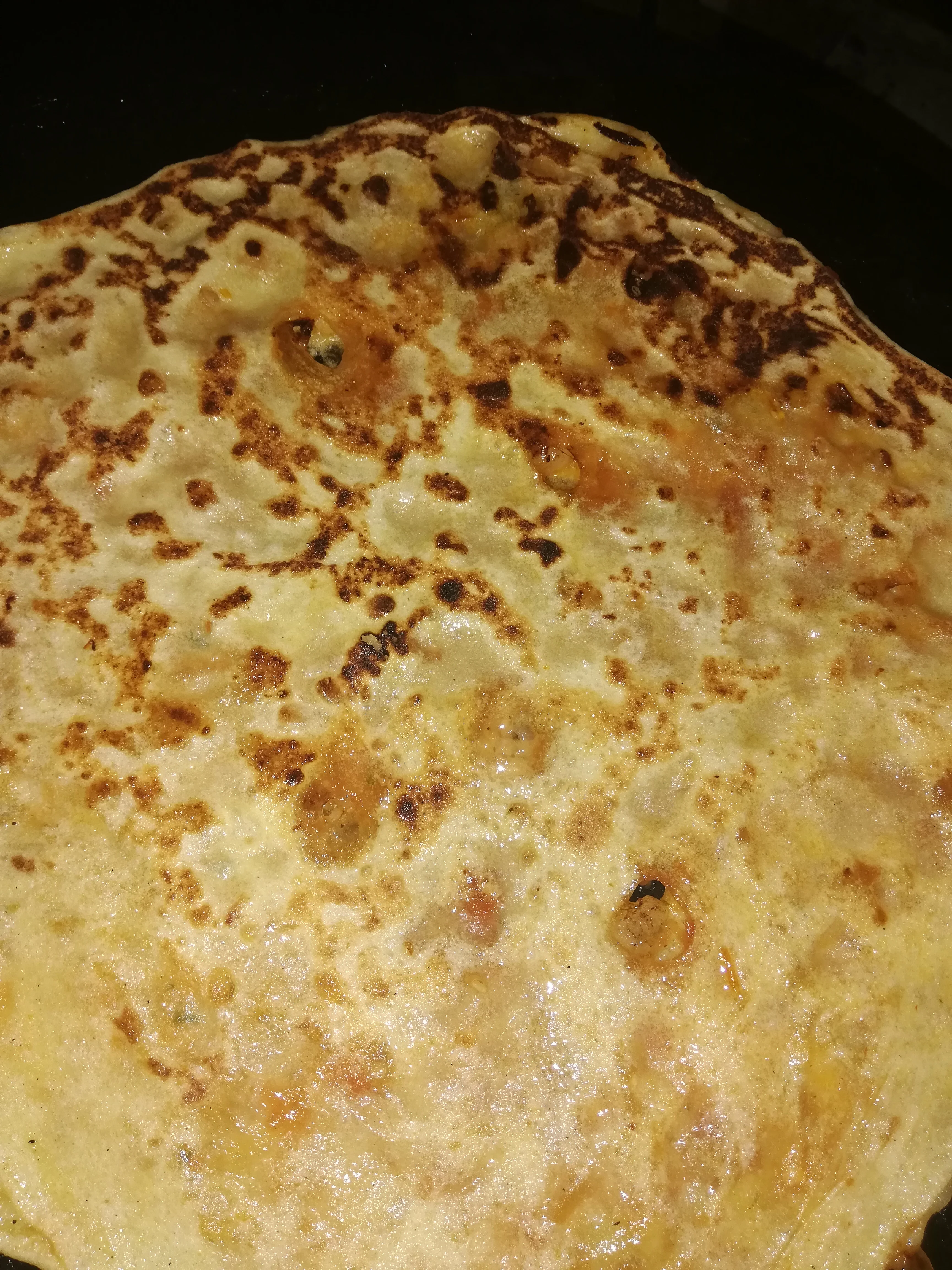 نحل شوية عجين و نحط فوق و شحمة و نزيد نغطيها بقرصة عجينة و نقرص بزيت و نحطها طيب في طاجين حيييحححح